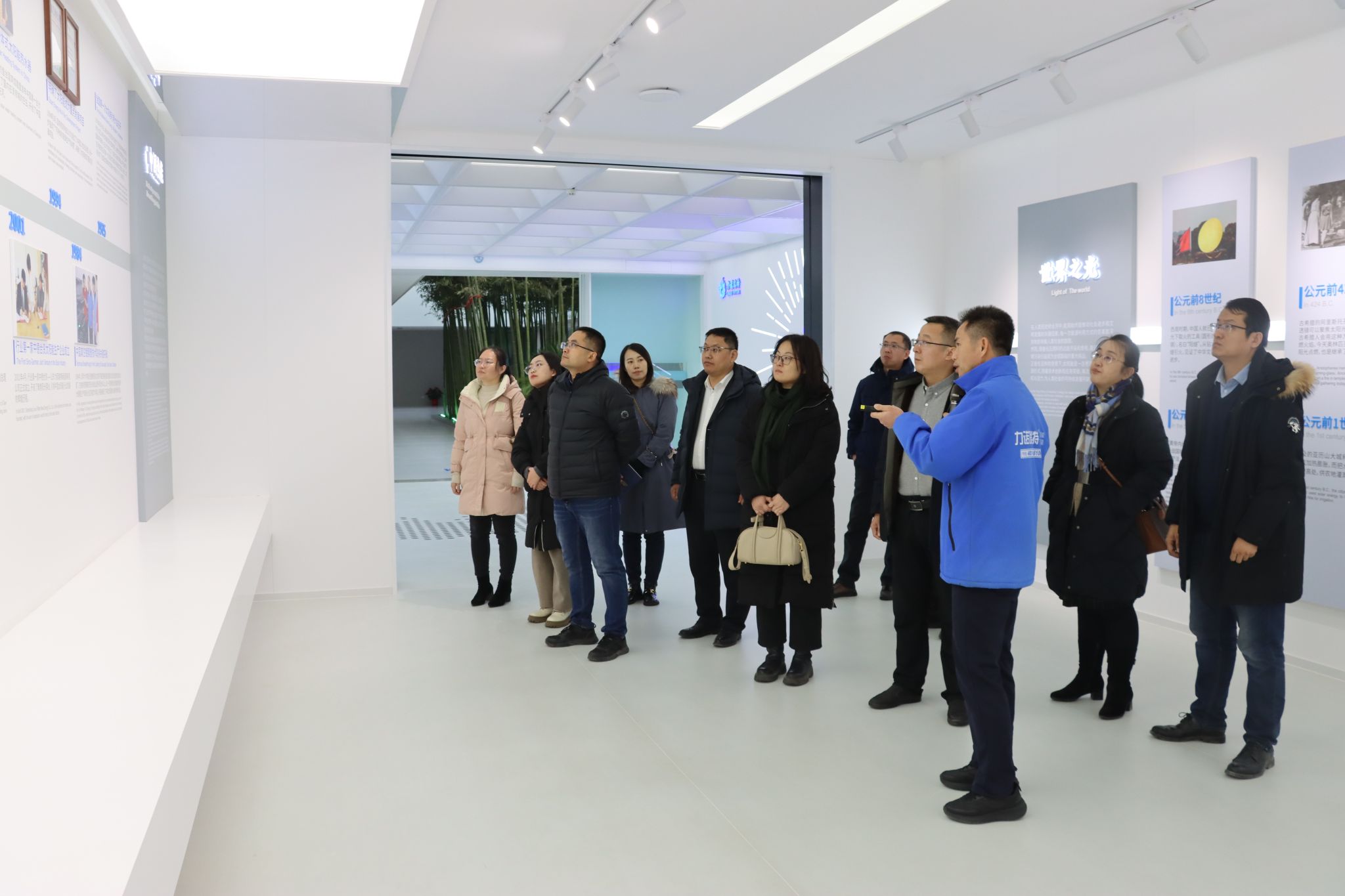 在九章(济南)量子技术有限公司,公司总经理徐佳敏、副总经理楼小永、校友代表参会,双方就量子未来技术研究院建设、专业培育、就业实习等方面问题进行洽谈。