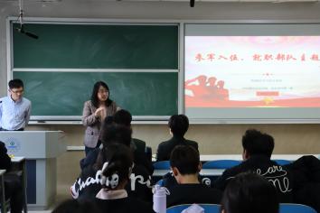 热血军营,不负韶华!参军报国,筑梦军旅!为落实国家鼓励高校应届毕业生应征入伍,让更多同学们了解参军入伍优待政策,12月8日,买球体育官方网站开展2024届毕业生参军入伍、就职部队主题宣讲会。学院特别邀请某部战区军队文职孙助理和退役大学生士兵、学校学生军训教导大队聂其家及刘力萌担任主讲嘉宾,学院党委副书记章岚出席,毕业生辅导员卢洪斌主持,学院2024届毕业生及部分研究生、在校生参加。