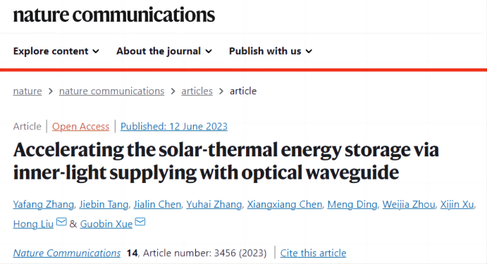 我院教师张亚芳、薛国斌等人在光波导内通光加速太阳能相变蓄热研究方面取得进展,相关成果“Accelerating the solar-thermal energy storage via inner-light supplying with optical waveguide”发表在6月份的nature communications杂志上,青年教师张亚芳博士为第一作者,薛国斌、刘宏教授为通讯作者,买球体育官方网站为唯一作者单位。