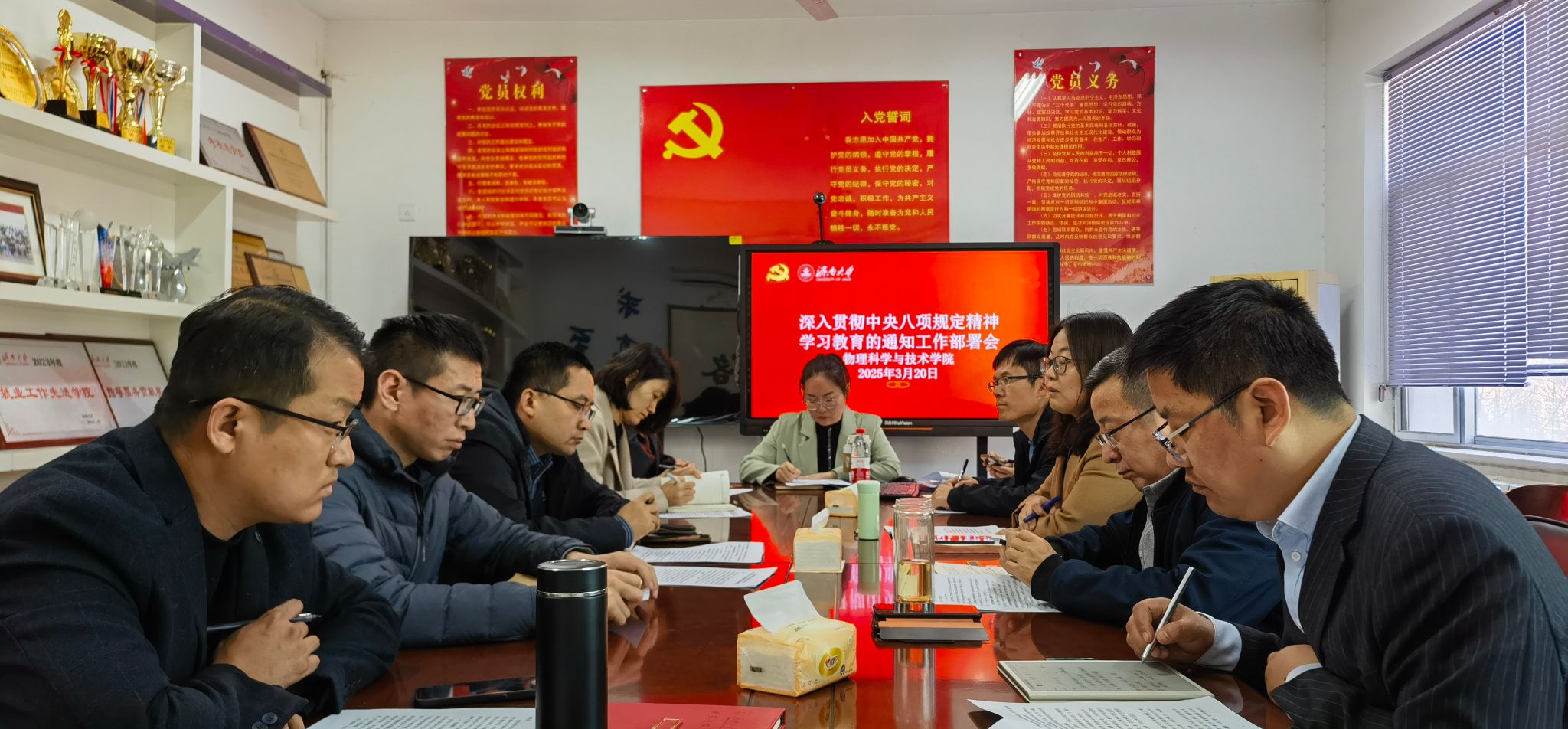 3月20日下午,买球体育官方网站召开党建工作专题会议,积极落实学校党委部署,传达《中共买球体育官方网站委员会关于开展深入贯彻中央八项规定精神学习教育的通知》精神,并对学院下一步开展主题教育活动进行部署。学院党委委员、班子成员、组织员、全体党支部书记参加会议,学院党委书记丛菡菡主持会议。
