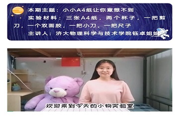 为了给小学生普及物理知识,提高小学生的科学素养,买球体育官方网站青年志愿者协会于12月6日在线上开展了“小小A4让你意想不到”志愿服务活动。