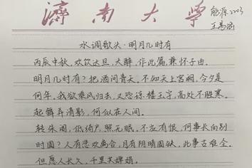 4月19日,志愿服务部举办了书法初赛,要求同学们在线上提交书法作品——《论语》十二章。初赛阶段内,大家积极响应、认真书写,使“横竖撇捺”灵动地流淌在大家的笔端,“儒家古韵”播撒进大家的心间。初赛结束后,物院志愿者对大家的书法进行认真评比,坚持公平、公正、公开原则,从书写规范、字体大小、整体效果等方面进行打分。经过最终评定,有十二位同学进入了4月21日的决赛,前往第十教学楼现场书写《水调歌头》。每位参赛者都用心书写每一笔笔画、每一个汉字,尽其所能地展示自身书法的才能。他们的作品中无不透着或规范、或严谨、或灵动的气质,而他们认真、严谨的态度也为我们做出了榜样。