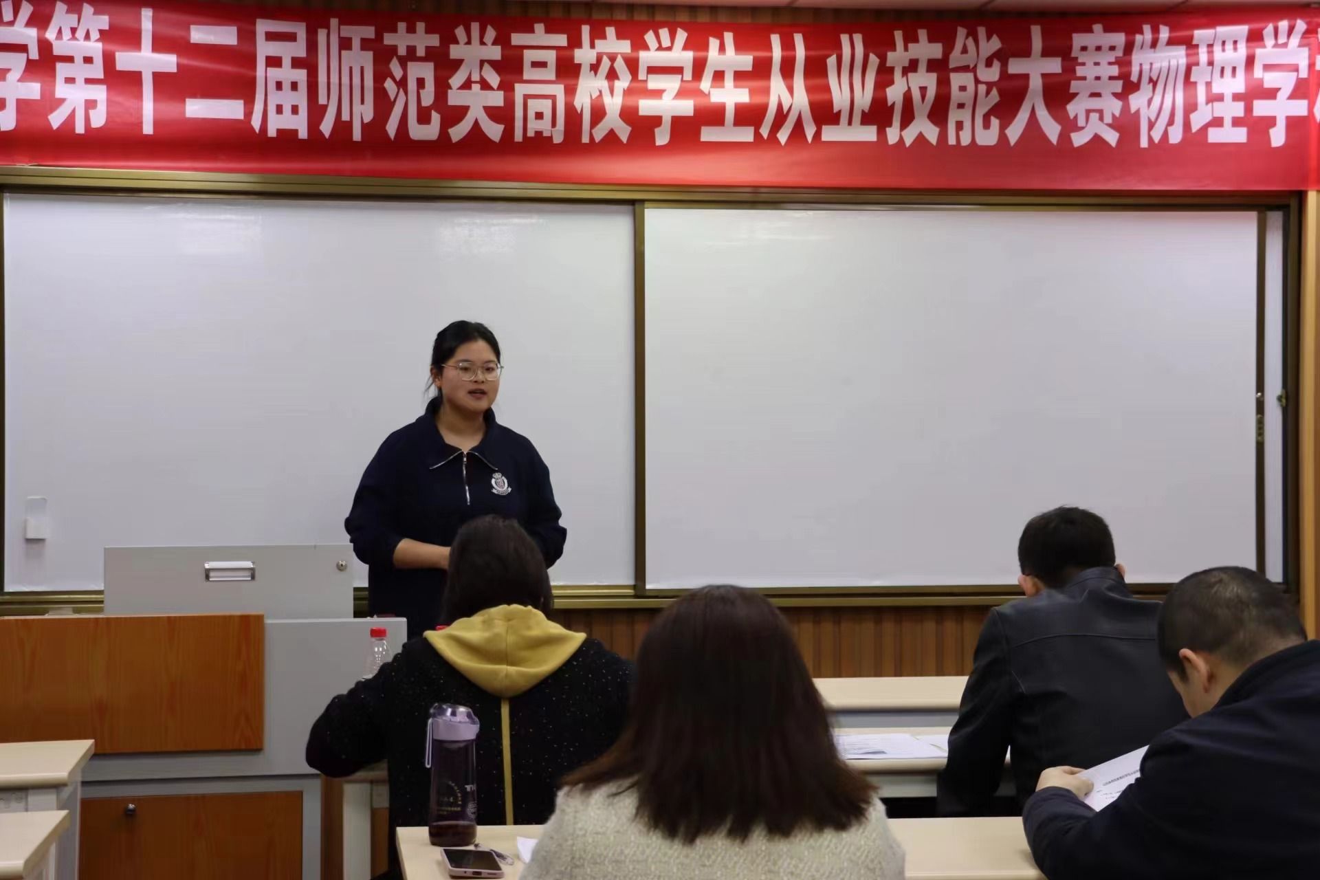 为强化师范生从教基本技能教学与训练,提升师范生的教学技能、实践能力和综合素质,推进教师教育持续健康发展,4月2日,由买球体育官方网站承办的第十二届师范类高校学生从业技能大赛(物理学科)校级决赛在七教A607举行。